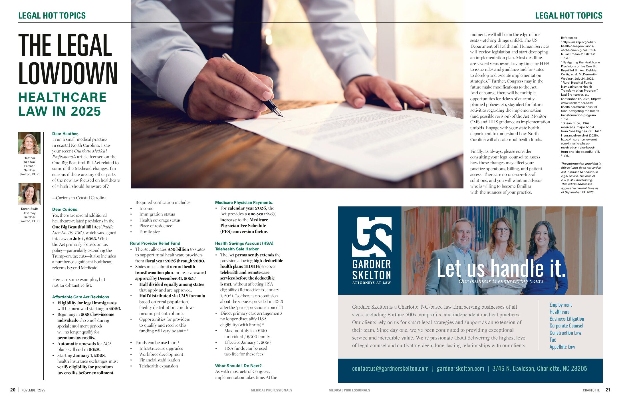 Newsletter Articles PressDecember 16, 2025Charlotte Medical Professionals Article – November 2025By Gardner Skelton Click on image to read. Previous Charlotte Medical Professionals Article – September 2025 Related Posts COVID-19 AND RETALIATION IN THE WORKPLACE March 22, 2022 WHEN IS COVID-19 A DISABILITY? January 10, 2022 Federal Health Care Investigators to Audit Medicaid Telehealth in Behavioral Health in 2019, 2020 February 26, 2020 EEOC ISSUES NEW GUIDANCE ON PANDEMIC-RELATED DISCRIMINATION April 15, 2022